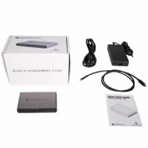 Based on the Intel Goshen Ridge controller, Echo 5 Thunderbolt Hub features four Thunderbolt 4 ports; one for connection/power to your computer, plus three to connect Thunderbolt peripheral devices.