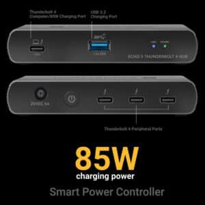 Echo 5 Thunderbolt 4 Hub will even power your laptop with up to 85W of charging power. When it is time to leave, just unplug the Thunderbolt cable, grab your laptop, and go.
